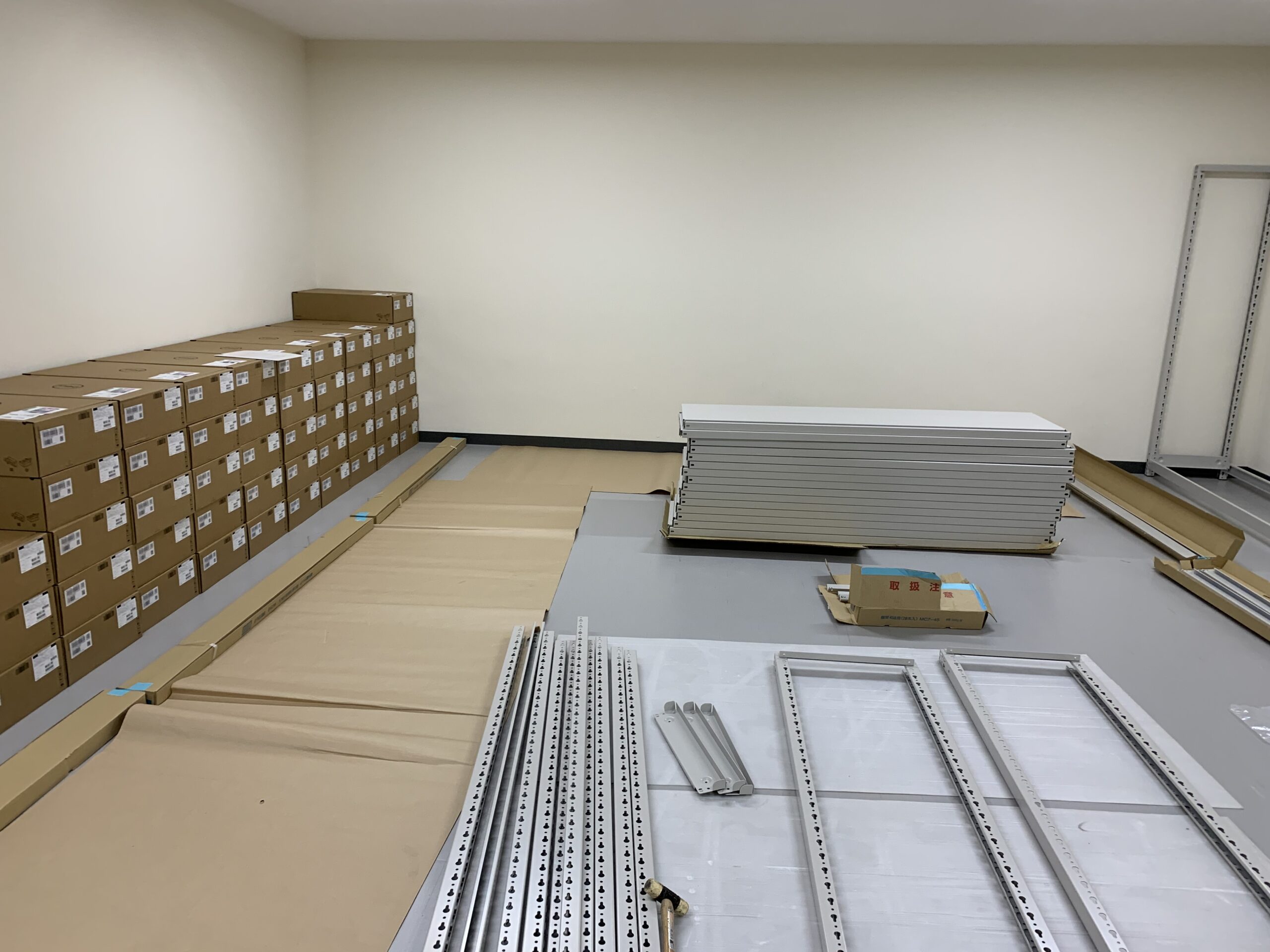 倉庫室・棚の組立て