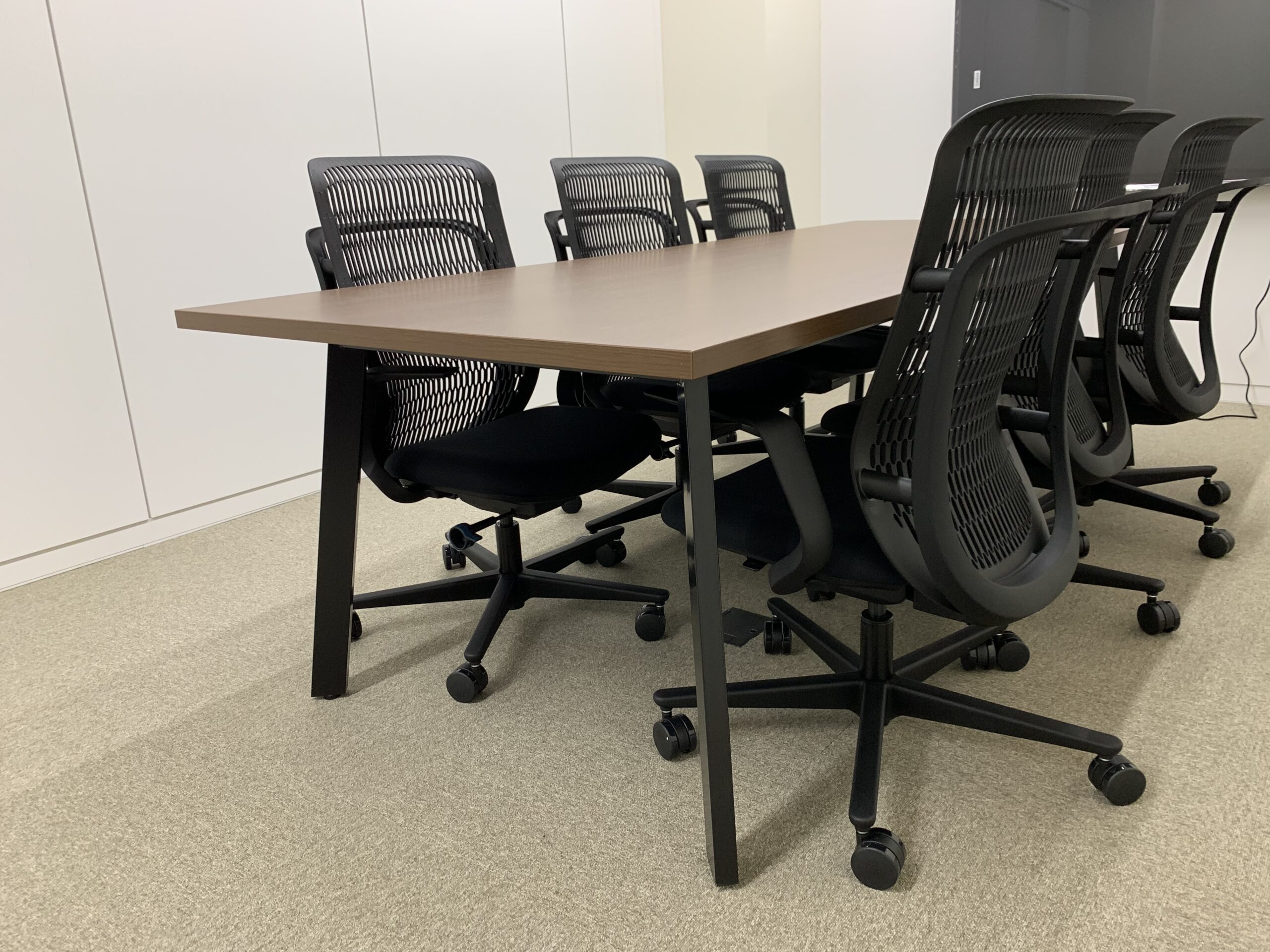 会議室はブラックとウォールナット色でまとめ重厚感のある空間となっております。